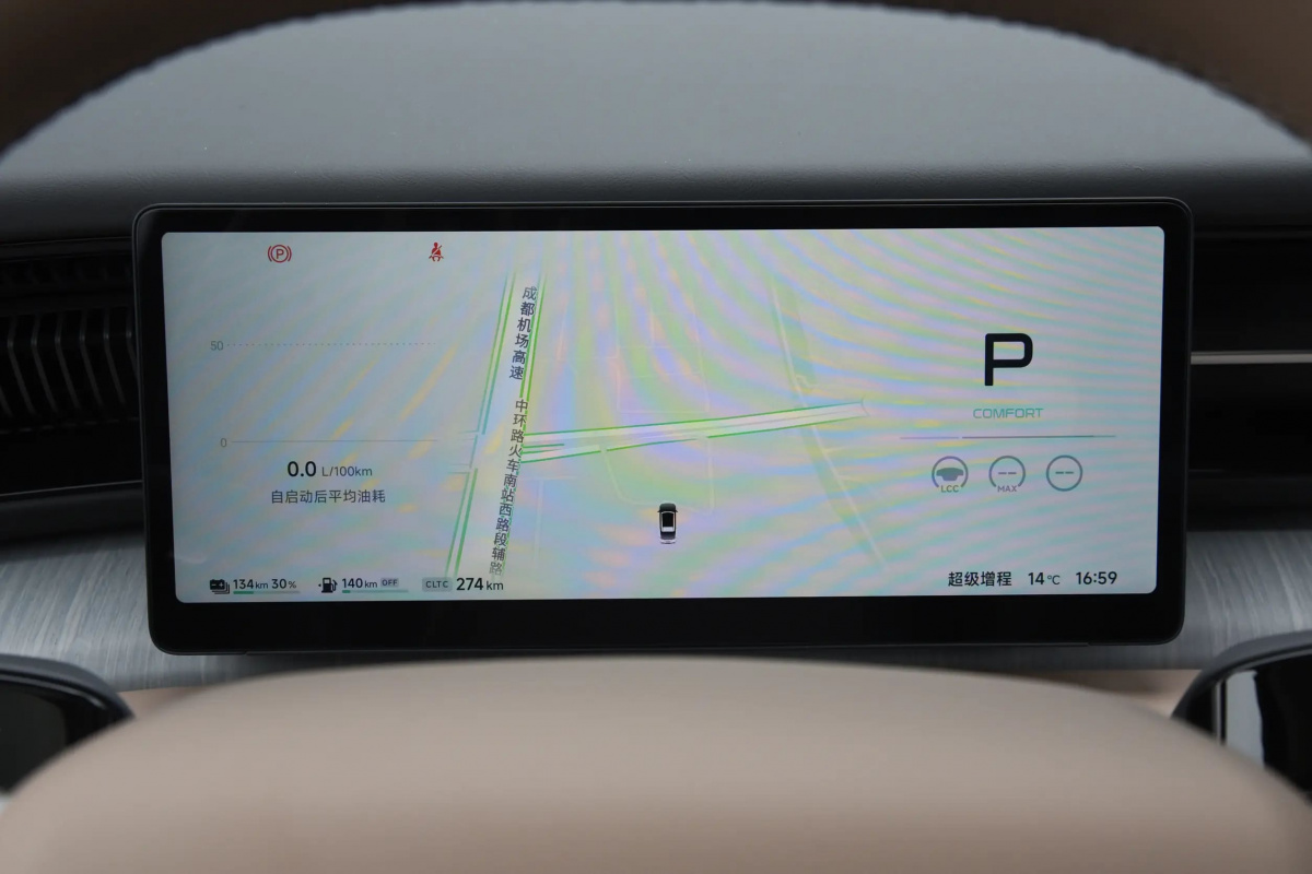 Салон побудований навколо цифрової архітектури з централізованим керуванням усіма функціями автомобіля. Інтелектуальна мультимедійна система підтримує AI-асистента, навігацію та адаптивні сценарії поїздок. Простір оптимізований для комфорту пасажирів і ефективної роботи гібридної системи під час руху.