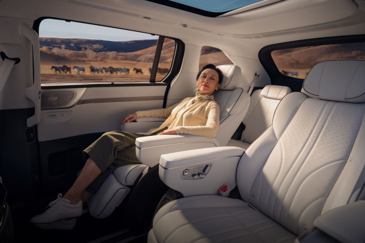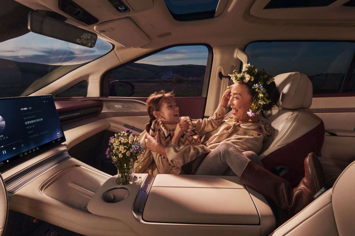 Великий дисплей діагоналлю 21,4 дюйма перетворює задню частину салону на мультимедійну зону. Він підтримує перегляд контенту, керування функціями та розваги під час поїздки.