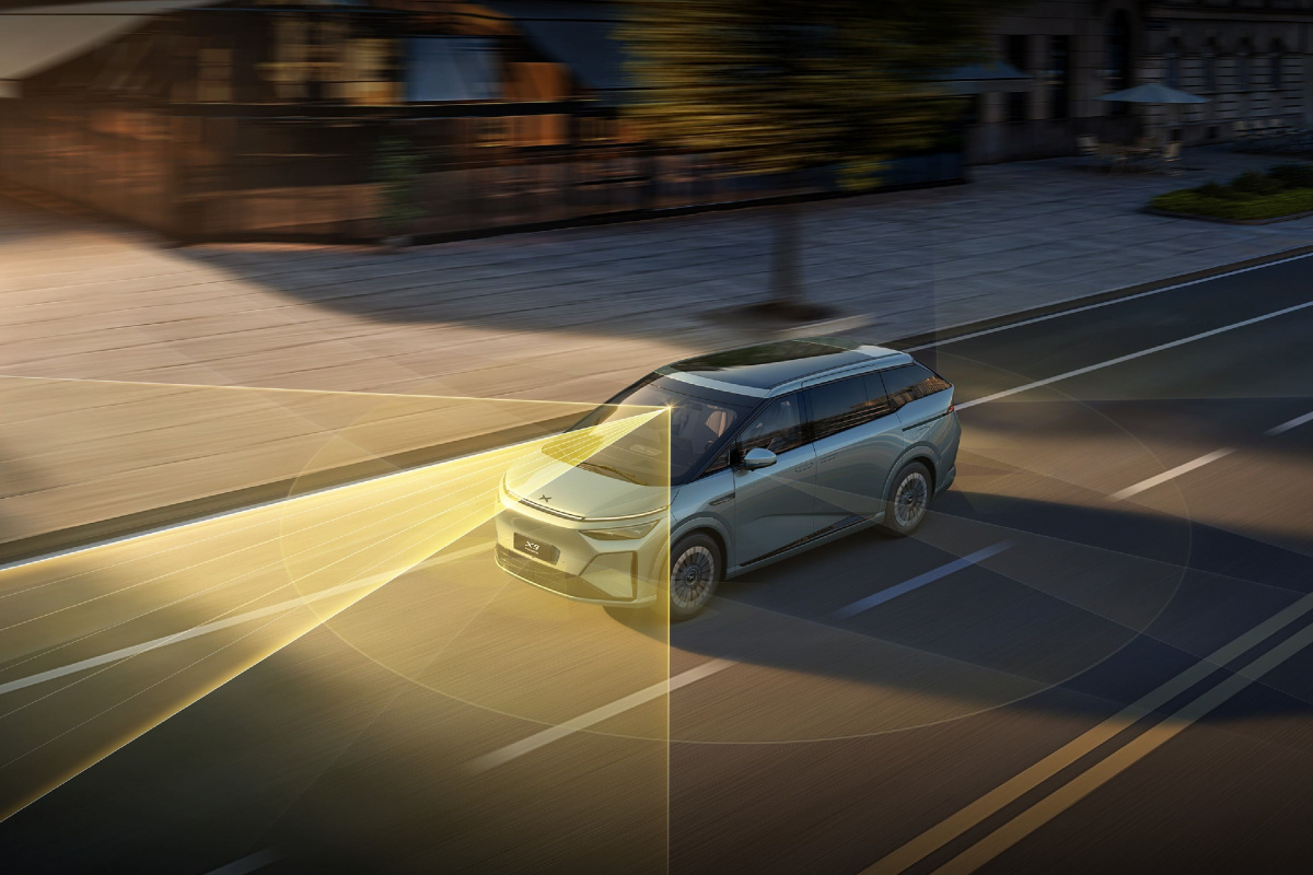 Xiaopeng X9 PHEV розроблений як точна аеродинамічна система, де форма працює на стабільність і зниження втрат енергії. Зовнішні сенсори та камери постійно зчитують обстановку, забезпечуючи коректну роботу електронних асистентів. Світлові модулі інтегровані в загальну електронну архітектуру автомобіля й виконують функцію активної безпеки.