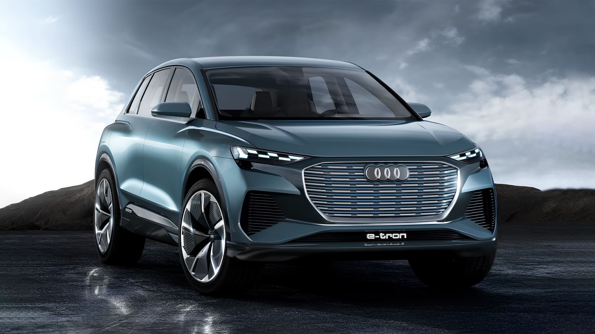 Екстер'єр електрокара зберігає впізнаваність бренду – потужні колісні арки та глуха решітка Singleframe візуально роблять авто більш масивним. Аеродинаміка тут багатофункціональна – активні заслінки та плоске днище знижують опір повітря. Концепція салону Ауді Q4 E Tron побудована навколо відсутності центрального тунелю, що забезпечує додаткове місце для пасажирів задніх сидінь. Це гарантує відчуття комфорту, як в електрокарах дорогих брендів.