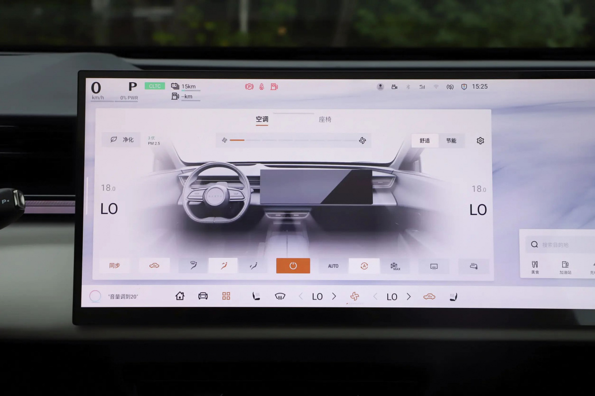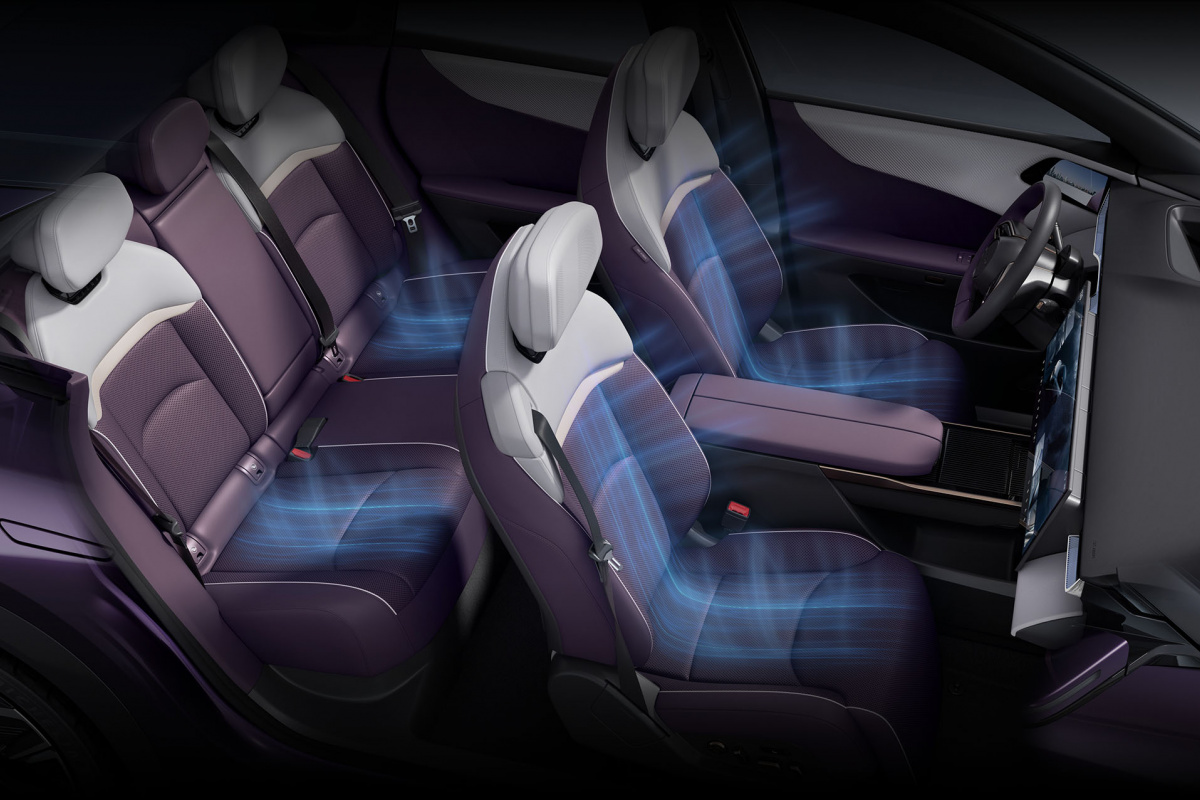 Салон EZ-60 - це поєднання мінімалізму із розкішшю, створюючи атмосферу сучасного інтер'єру. М’які сидіння з підтримкою ніг і великий підлокітник з відсіком для гаджетів роблять подорожі легкими та приємними, а шкіряне мультикермо додає відчуття преміальності. Простір доповнює потужна акустична система з 23 динаміками, що перетворює салон на оазис чіткого та чистого звучання