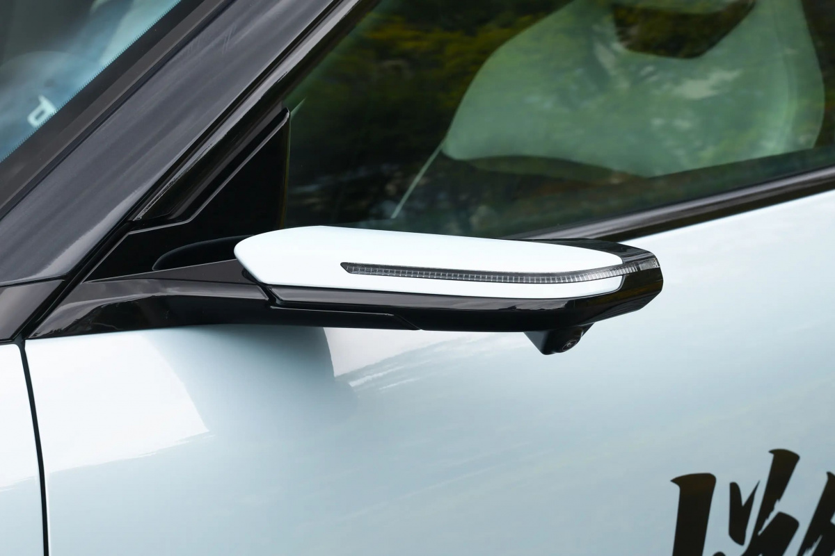 Mazda EZ-60 вражає стрімким силуетом і виразними лініями, що поєднують елегантність із спортивною енергією. Вузькі фари складної форми створюють ефект «пильного погляду», а дзеркала з інтегрованими камерами додають технологічності та точності. Великі колеса разом із щедрим кліренсом підкреслюють впевненість кросовера й готовність до будь-яких доріг.