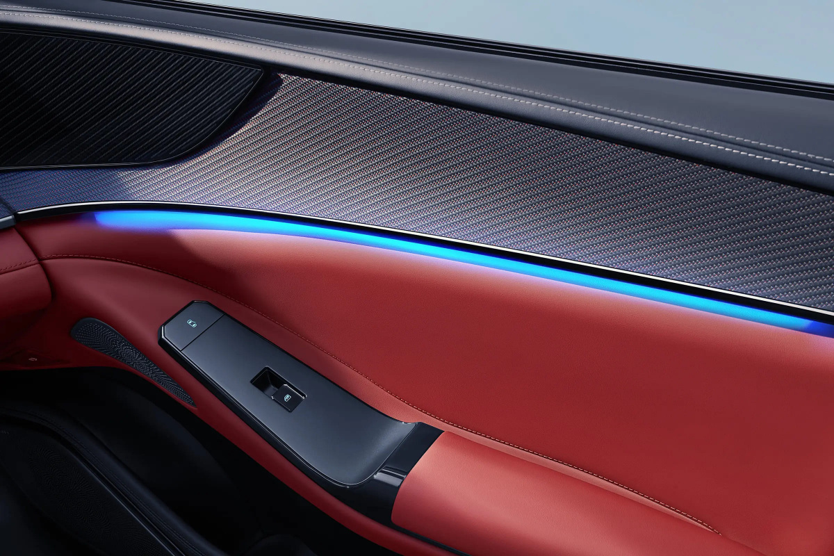 Светодиодная система подсветки с многозонным управлением позволяет изменять цвета и сценарии освещения салона. Интеграция с мультимедийной системой обеспечивает синхронизацию подсветки с режимами движения и атмосферой в салоне.