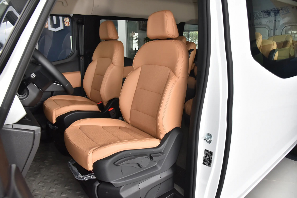 Минималистичный дизайн Farizon SuperVan с четкой центральной зоной управления, большим количеством физических кнопок для удобства водителя. Центральный экран управления добавляет технологической утонченности, а трехспицевый многофункциональный руль с хромированными элементами улучшает общий вид автомобиля. Такой дизайн способствует удобству и повседневной эффективности в управлении и оперативном использовании.